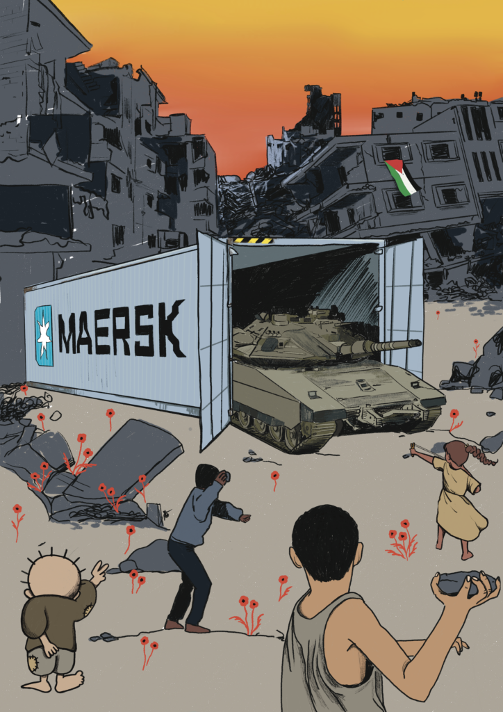 Disrupt the weapons pipeline facilitated by genocide profiteers like Maersk. Maersk is one of the world’s largest shipping and logistics companies, directly responsible for transporting military cargo to Israel for genocide.