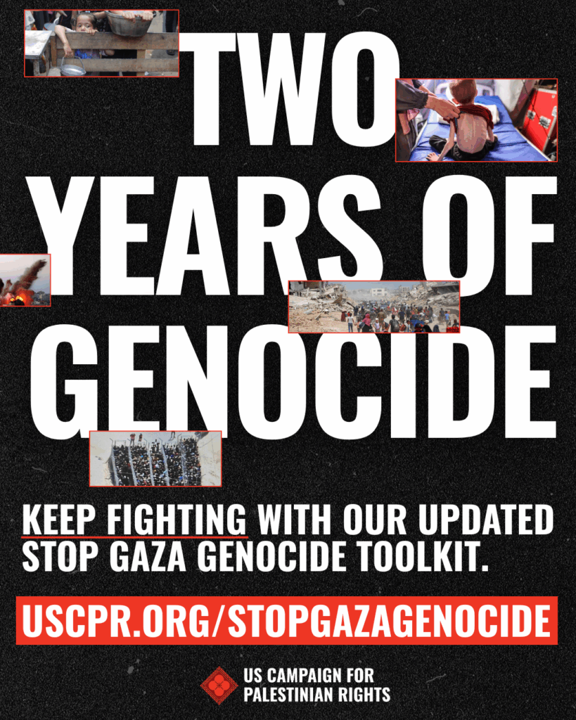 P.S. Tell your friends and followers about how they can take action on this two-year anniversary of the current ongoing genocide. Share this post about the updated Stop Gaza Genocide toolkit on Instagram.